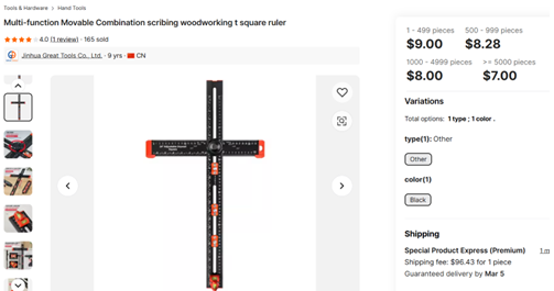 4-in-1 Cabinet Hardware Jig Adjustable T Square Ruler