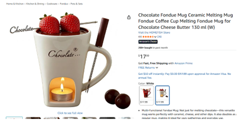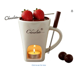 Ceramic Chocolate Fondue Mug with Heating Base for Desserts and Dipping