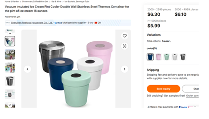 Insulated Ice Cream Pint Holder Stainless Steel Chiller