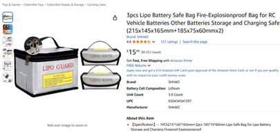 Lipo Battery Safe Bag Fireproof Storage Charging Case Set
